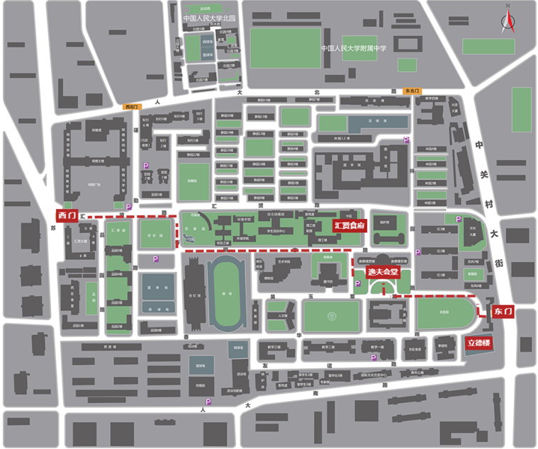 地图:中国人民大学中关村校区地图(含校门、会议地点)